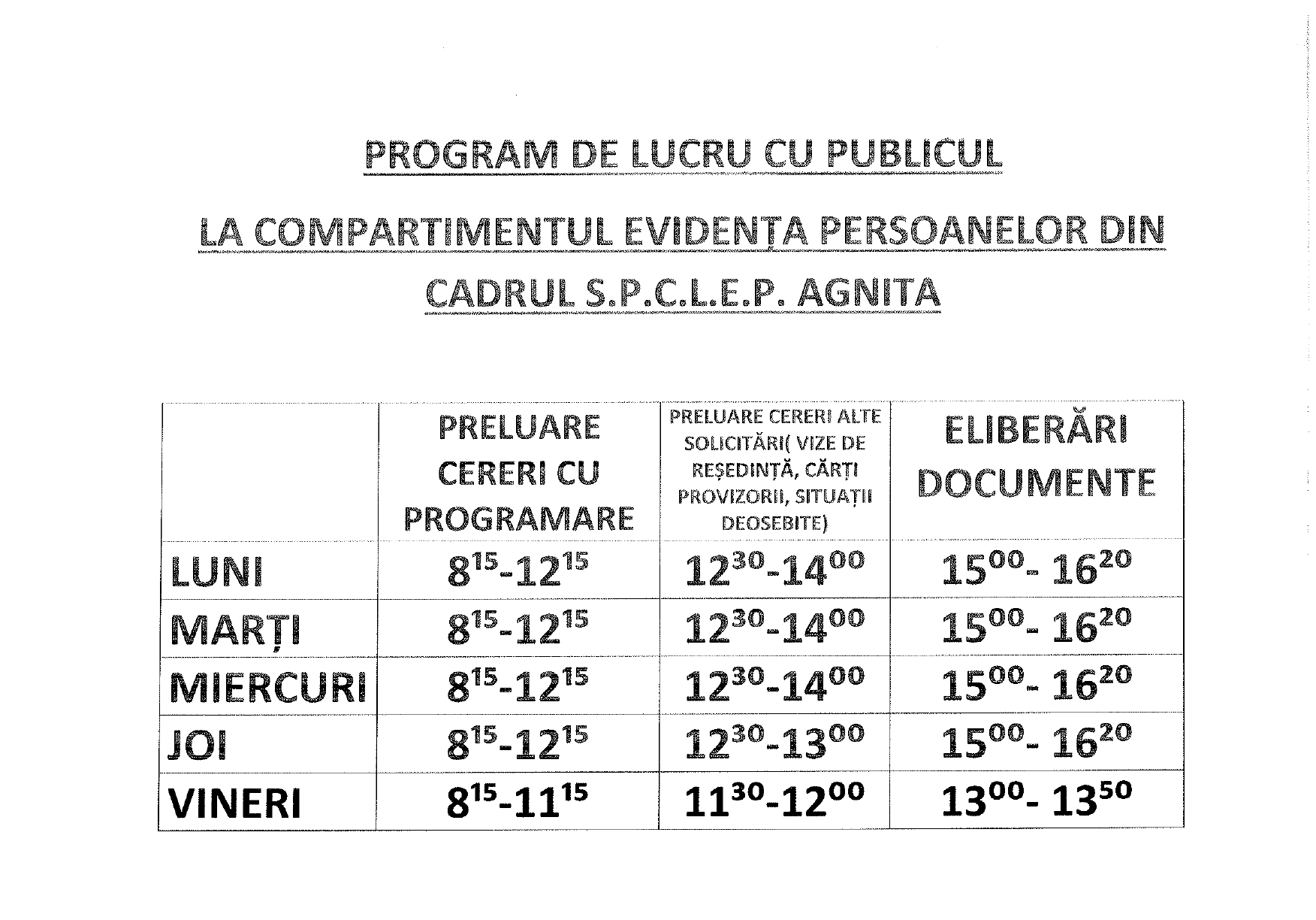 Program de lucru cu publicul (Telefon 0269 510 320)